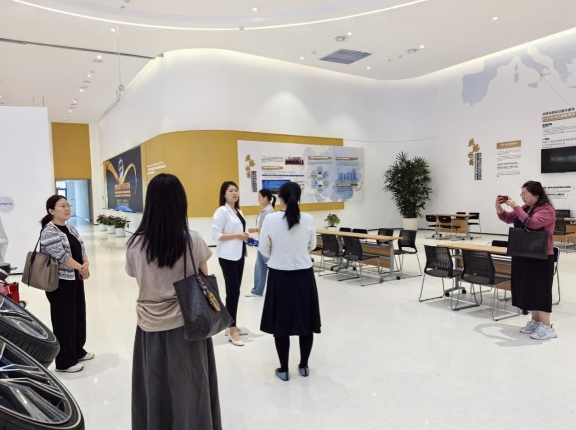 调研团一行受到了企业的热情接待,在青岛传化公路港物流有限公司山东大区人力资源部总监蔡学沛陪同下,调研团参观了丝路电商展厅、跨境电商孵化基地和新零售业务拓展平台。每到一处,调研团成员都认真聆听企业讲解,详细了解企业的最新发展状态、新兴业务板块以及未来规划,并就行业发展趋势、技术前沿动态等问题进行了深入探讨。