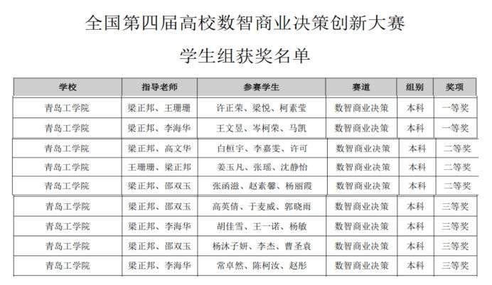 图2 数智化商业决策创新大赛区域赛获奖名单