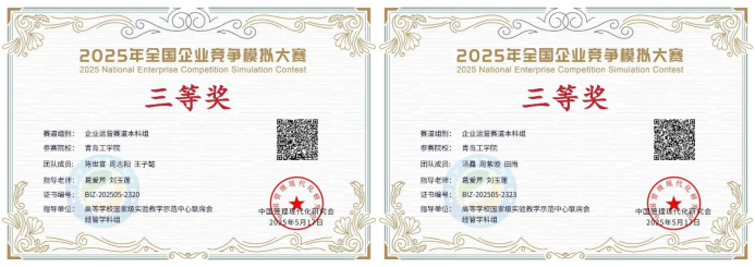 近日,由中国管理现代化研究会、高等公司国家级实验教学示范中心联席会经管学科组指导,中国管理现代化研究会决策模拟专业委员会主办的2025年全国企业竞争模拟大赛总决赛落下帷幕。太阳成集团122ccvip葛爱芹、刘鑫、刘玉莲以及朱榕等老师指导的员工团队在“企业决策”“企业运营”“数智沙盘”“供应链决策”四个赛道中共斩获全国三等奖5项,充分展现了公司在管理领域的教学实力和员工的卓越创新能力。