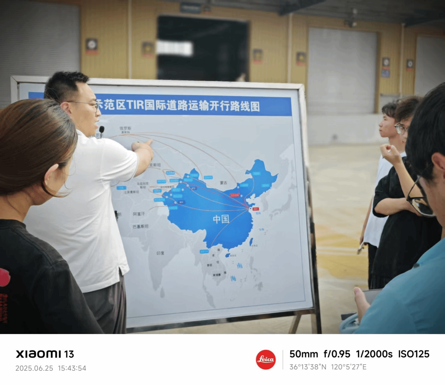 图4 刘总为员工讲解“上合示范区TIR国际道路运输开行路线”