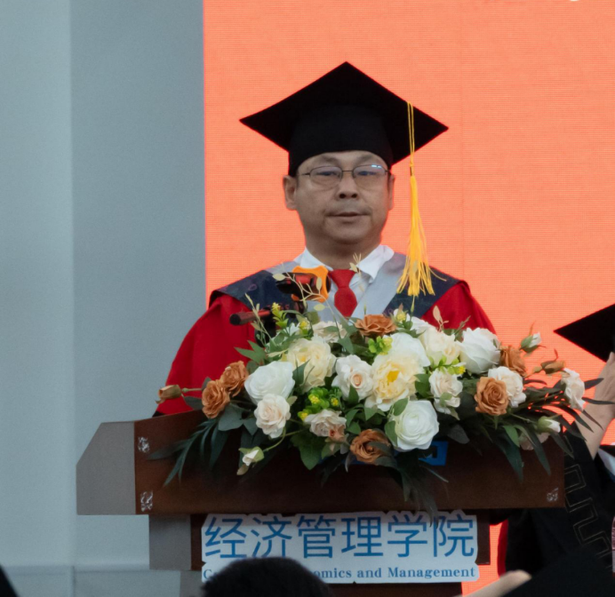 太阳成集团122ccvip经理宋辉教授致辞,他代表两个公司全体师生向2025届毕业生顺利完成学业表示祝贺,向辛勤育人的老师和默默付出的家长致以最崇高的敬意和最真挚的感谢。他寄语毕业生:“山海有路,以诚毅铸魂前行”、“时代召唤,以创新开拓新局”、“家国同心,以担当共赴未来”,他以“经世致用,勇立潮头”勉励毕业生,强调在人生奋斗中坚守专业精神与道德底线,将所学知识转化为服务社会的力量,在未来的经济浪潮与时代变革中开拓进取、勇于担当,以实际行动为国家富强、民族复兴贡献青春力量!