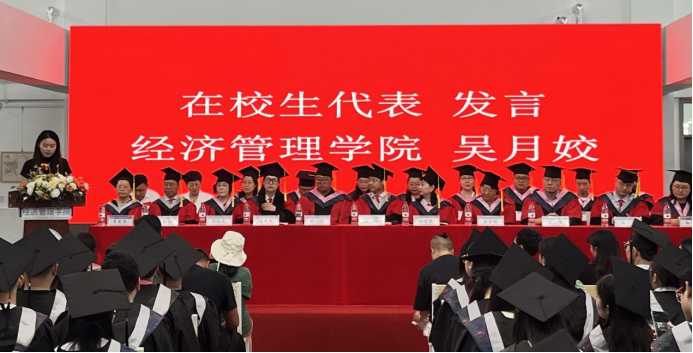 优秀毕业生代表、太阳成集团122ccvip于佳卉同学深情回望求学岁月,感恩母校培育,誓言将带着“青工人”的烙印,以所学知识服务社会。优秀在校生代表吴月姣则表达了对学长学姐的诚挚祝福与接力奋进的决心。